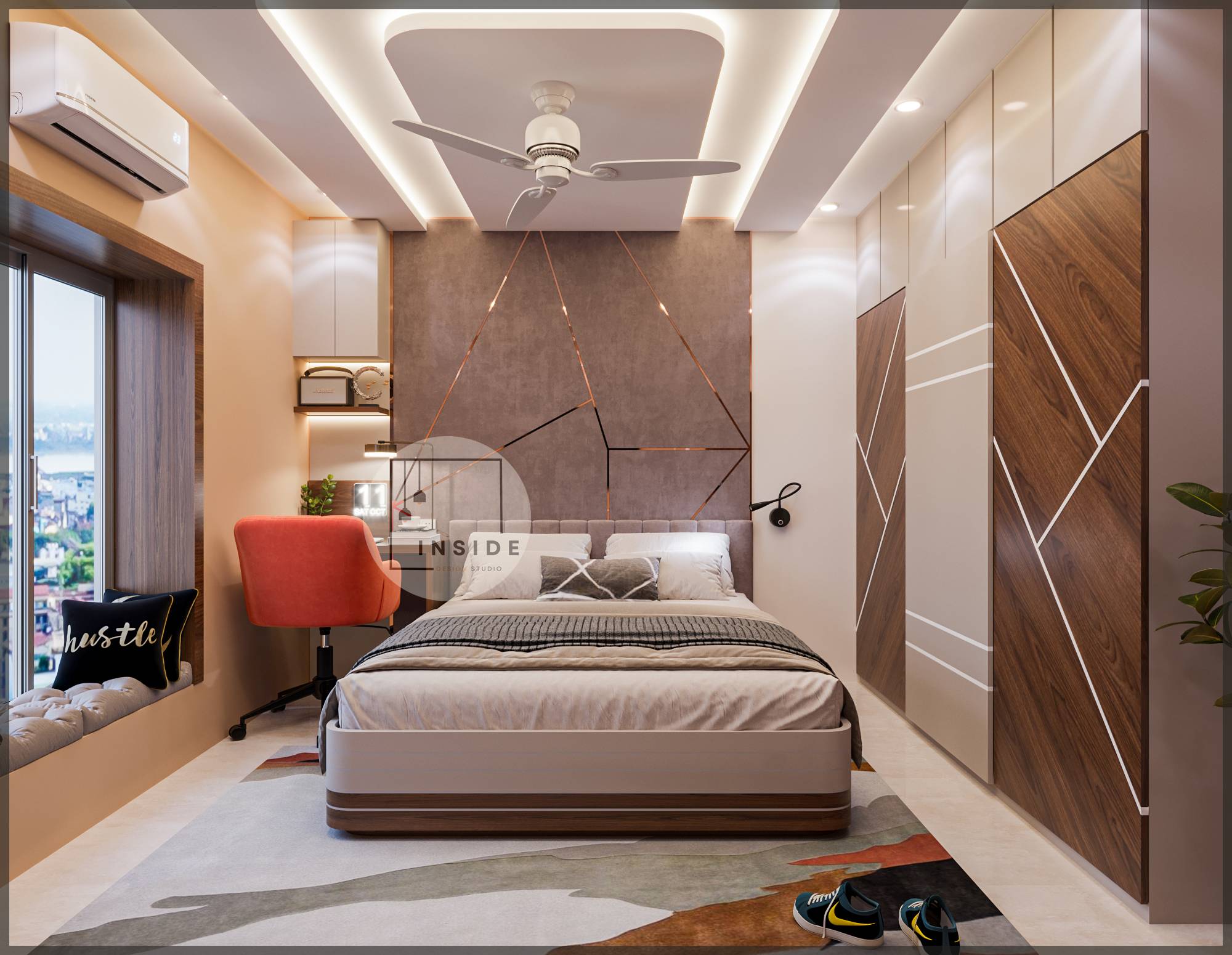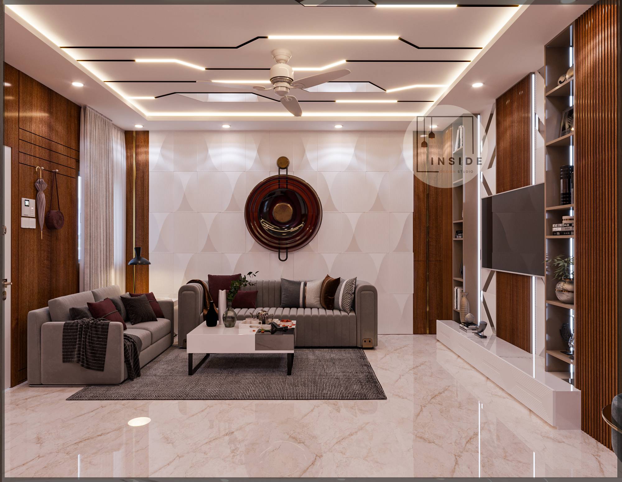 At Inside Design Studio, we believe every space has the potential to tell a unique story. Specializing in bespoke interior solutions, we offer a complete range of services including modular wardrobes, designer lighting, premium flooring, electrical and civil work, false ceilings, wall design, and painting.